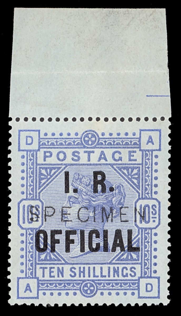 1885 10/- ultramarine on blued paper, AD, overprinted