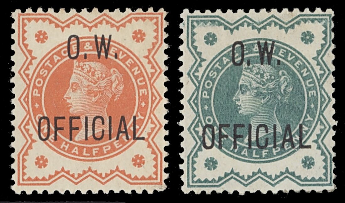 1896-1902 ½d. vermilion and ½d. blue-green, both unused with part original gum. S.G. O31 and O32, £825