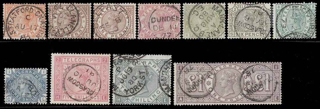 1876 ½d. to £1 group of eleven all used with various datestamps; chiefly good to fine. S.G. T1-T17, £2,000+