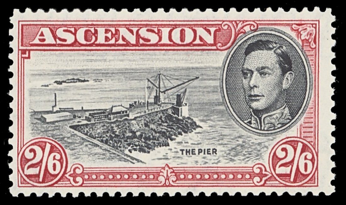 2/6d. black and deep carmine perf. 13 with "Davit" flaw, lightly mounted mint; a scarce and popular George VI variety. S.G. 45ca, £1,400