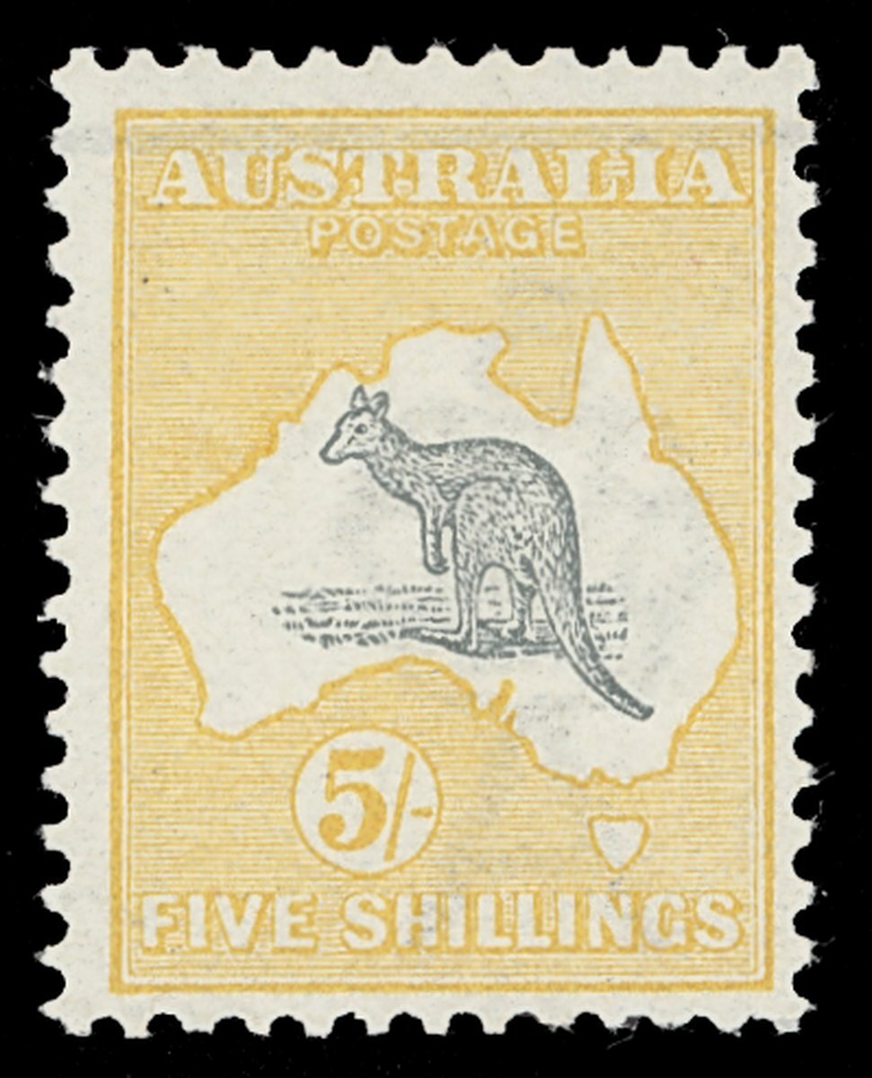 5/- grey and yellow; faintest trace of mounting, otherwise fine and fresh. S.G. 13, £450