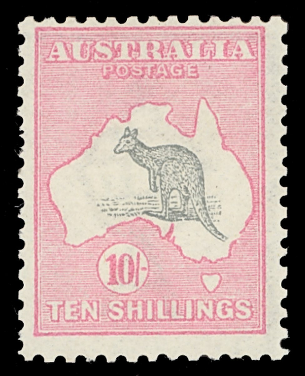 10/- grey and pink, large part original gum; lightly wrinkled and a touch off-white. Scarce. S.G. 14, £900