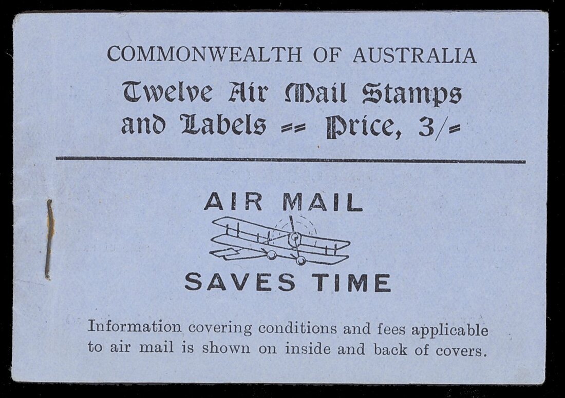 1930-35 Air 3/- booklet with blue cover and two panes of Air Mail labels; fine unmounted mint. SB24, £850. Photo