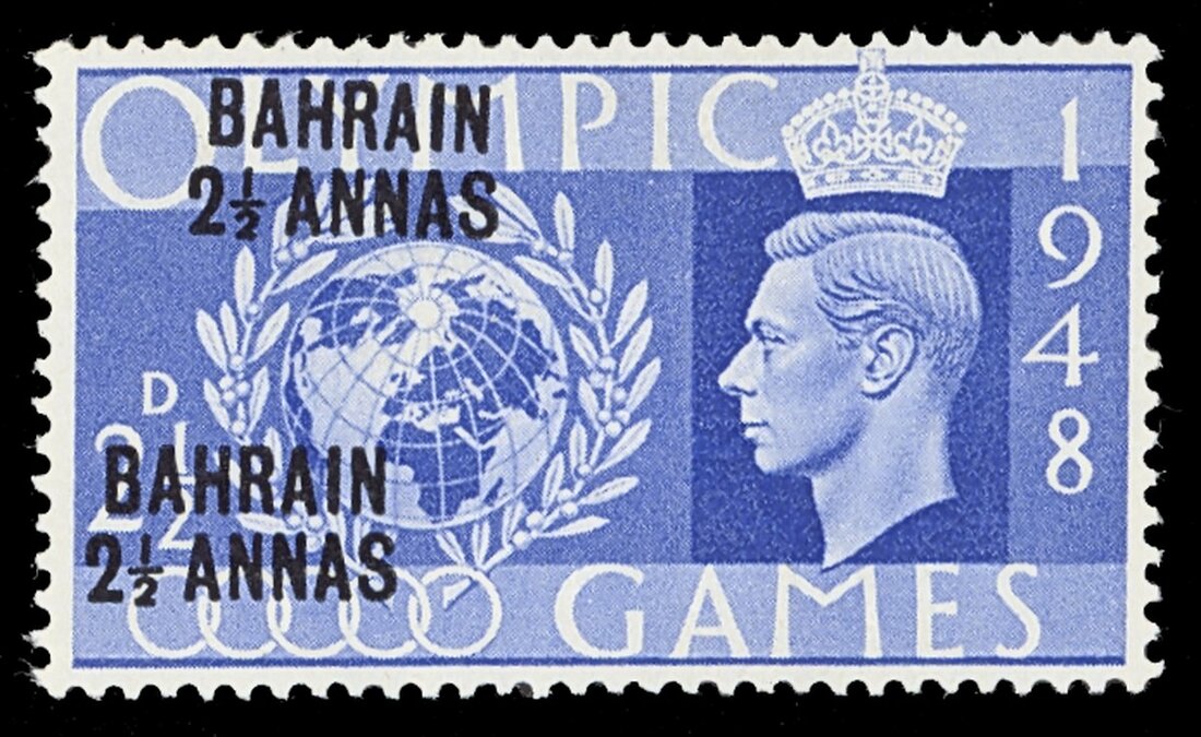 1948 Olympics 2½a. on 2½d. ultramarine, variety surcharge double, original gum, fine and scarce. S.G. 63a, £3,500. Photo