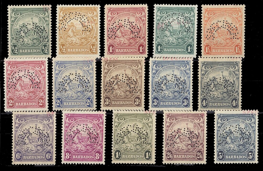 ½d. to 5/- set of fifteen (no 2d. claret), each perforated