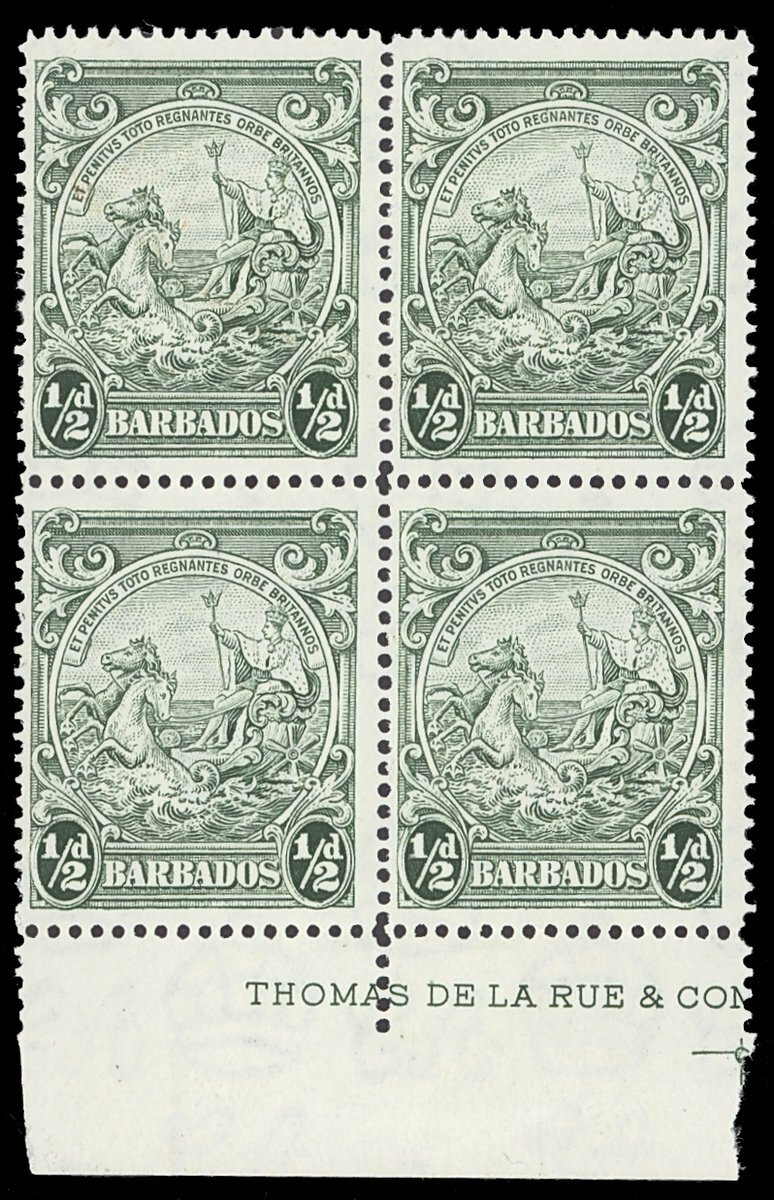 ½d. green perf. 14 part imprint block of four, lightly mounted in the margin only. S.G. 248b, £280+