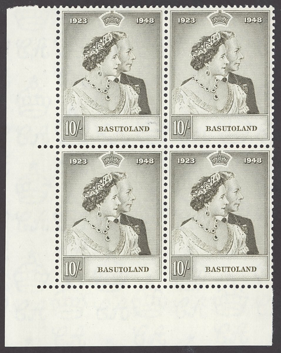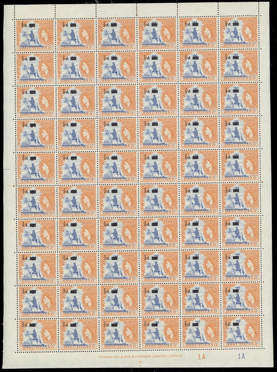 1948-63 small mint group on Hagner pages comprising 1948 Silver Wedding 10/- lower left corner block of four, 1959 ½d. on 2d. deep bright blue and orange, complete sheets of sixty (2) and 1961-6 set of eleven to 1r.; unmounted mint. S.G. £340+