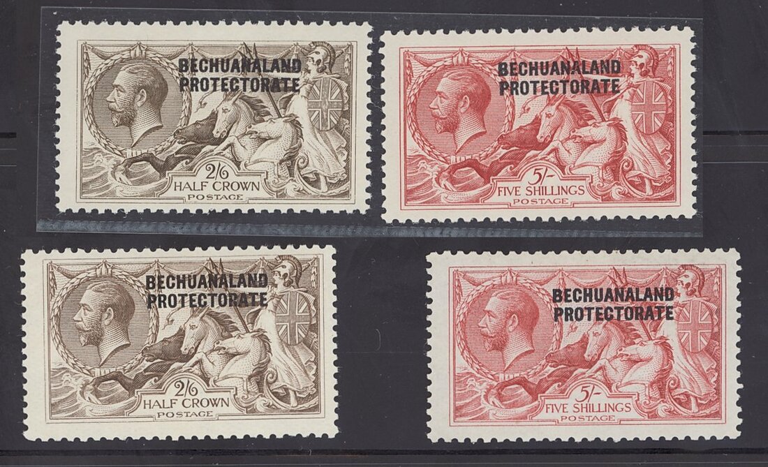 1885-1964 mint group on Hagner pages comprising British Bechuanaland 1885-7 CC ½d., 3d. and 4d., Anchor ½d., 1d., 2d. and 6d., 1891-1904 2d. grey-green and carmine 2d. horizontal pair, 1916-19 D.L.R. 2/6d. and 5/- (2 of each) and 1961 set to 1r. on 10/-; good to fine. S.G. £1,400+