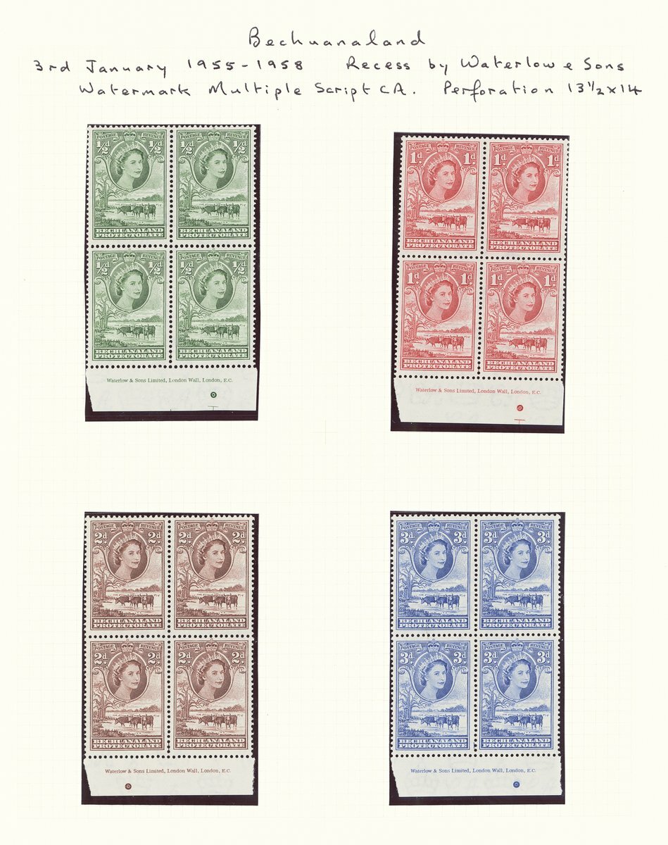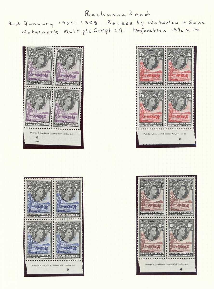 1955-58 Script ½d. to 10/- set of twelve and the same in imprint blocks of four except 4d., unmounted mint; fine. S.G. 143-153, £500+