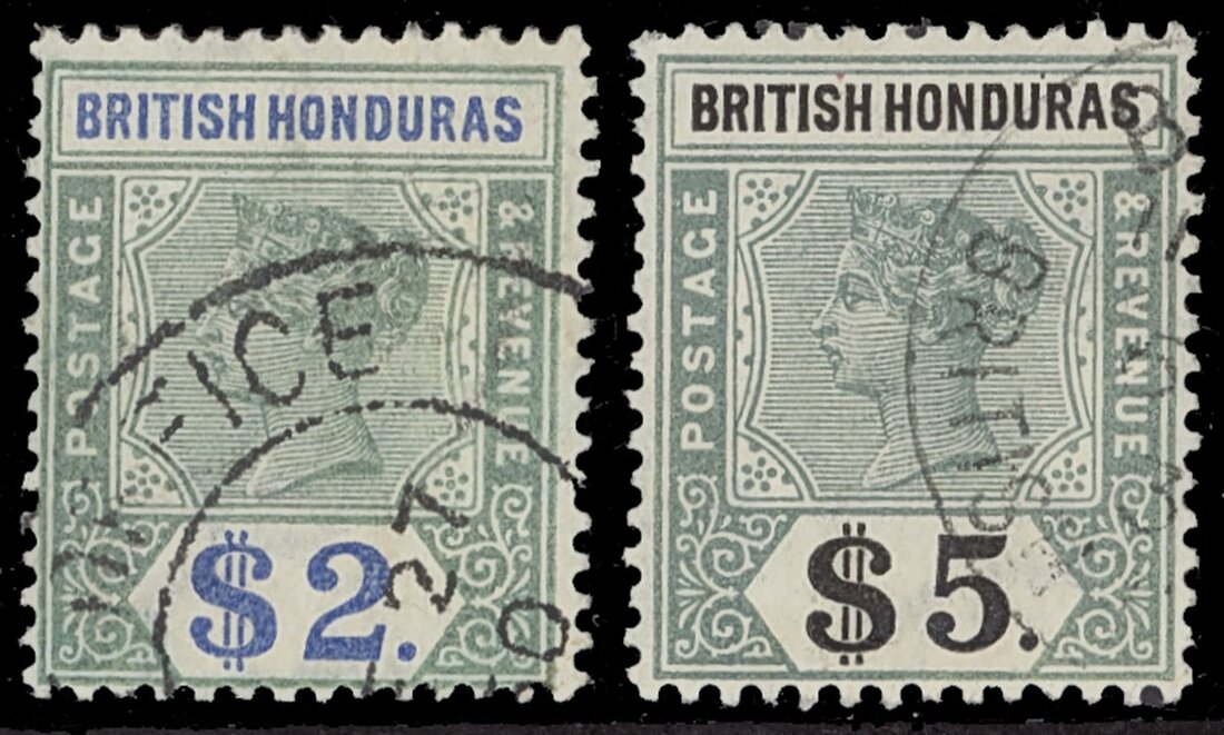 1891-1901 $2 and $5 both used, the $5 a touch toned. S.G. 64, 65, £800