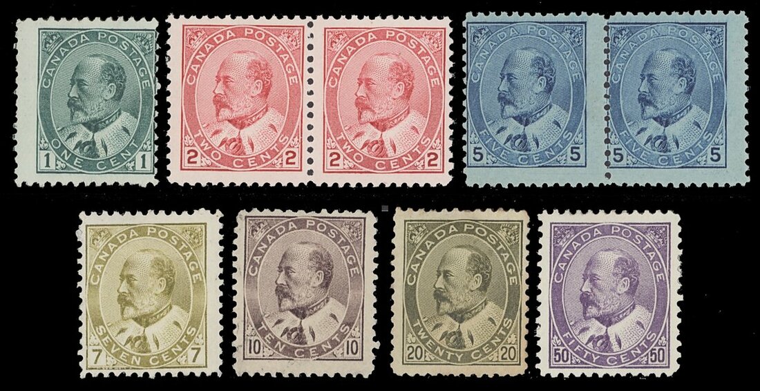 1903 1c., 2c., 5c. (both horizontal pairs), 7c. (no gum), 10c., 20c. (toned gum) and 50c. (small thin); part original gum to unmounted mint. S.G. 173-187, £1,100
