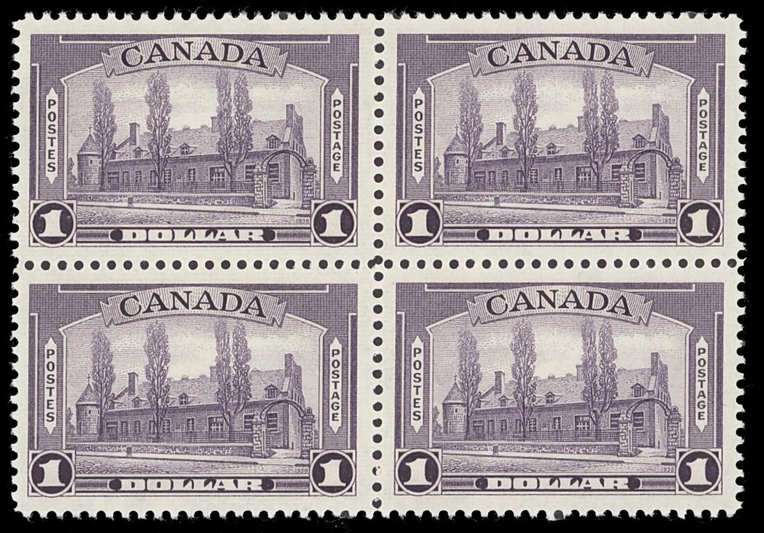 1937-38 $1 violet block of four, unmounted mint. S.G. 367, £260+