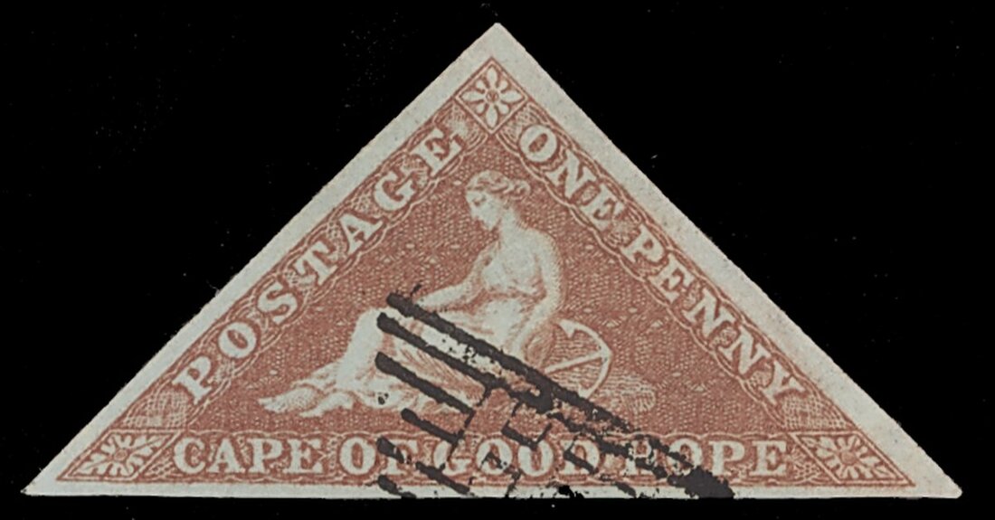 1853 paper deeply blued, 1d. brick-red with good to large margins, neatly cancelled with small part of the triangular obliterator leaving the upper part of "Hope" clear; a fine and most attractive example of this first issue stamp. S.G. 1, £450