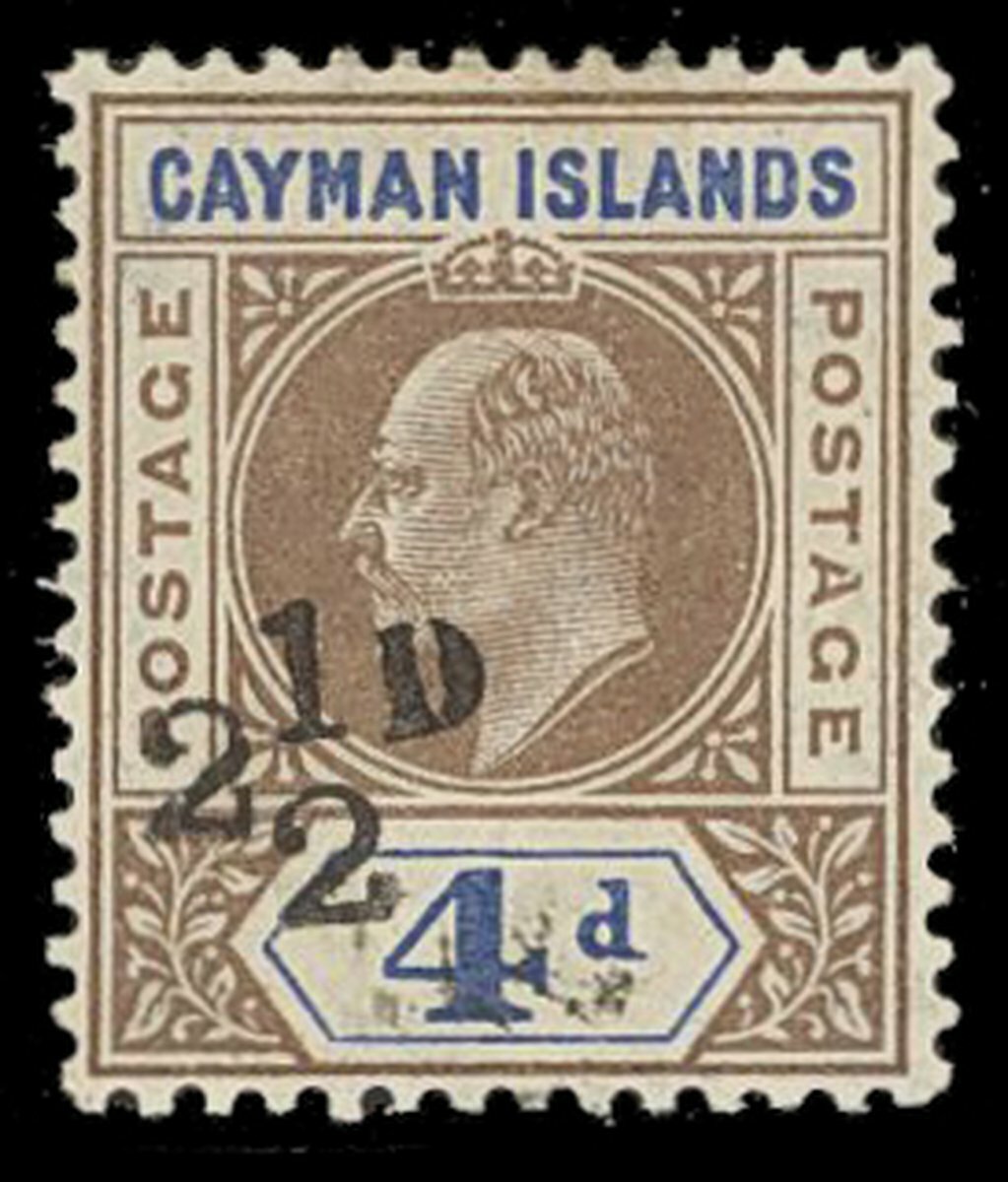 1908 2½d. on 4d. brown on blue; large part original gum which is slightly off-white. R.P.S. Certificate (1970) mentioning that the stamp is 'stained and soiled' - which is isolated to the value table only - otherwise a good example of this scarce stamp. S.G. 35, £1,800