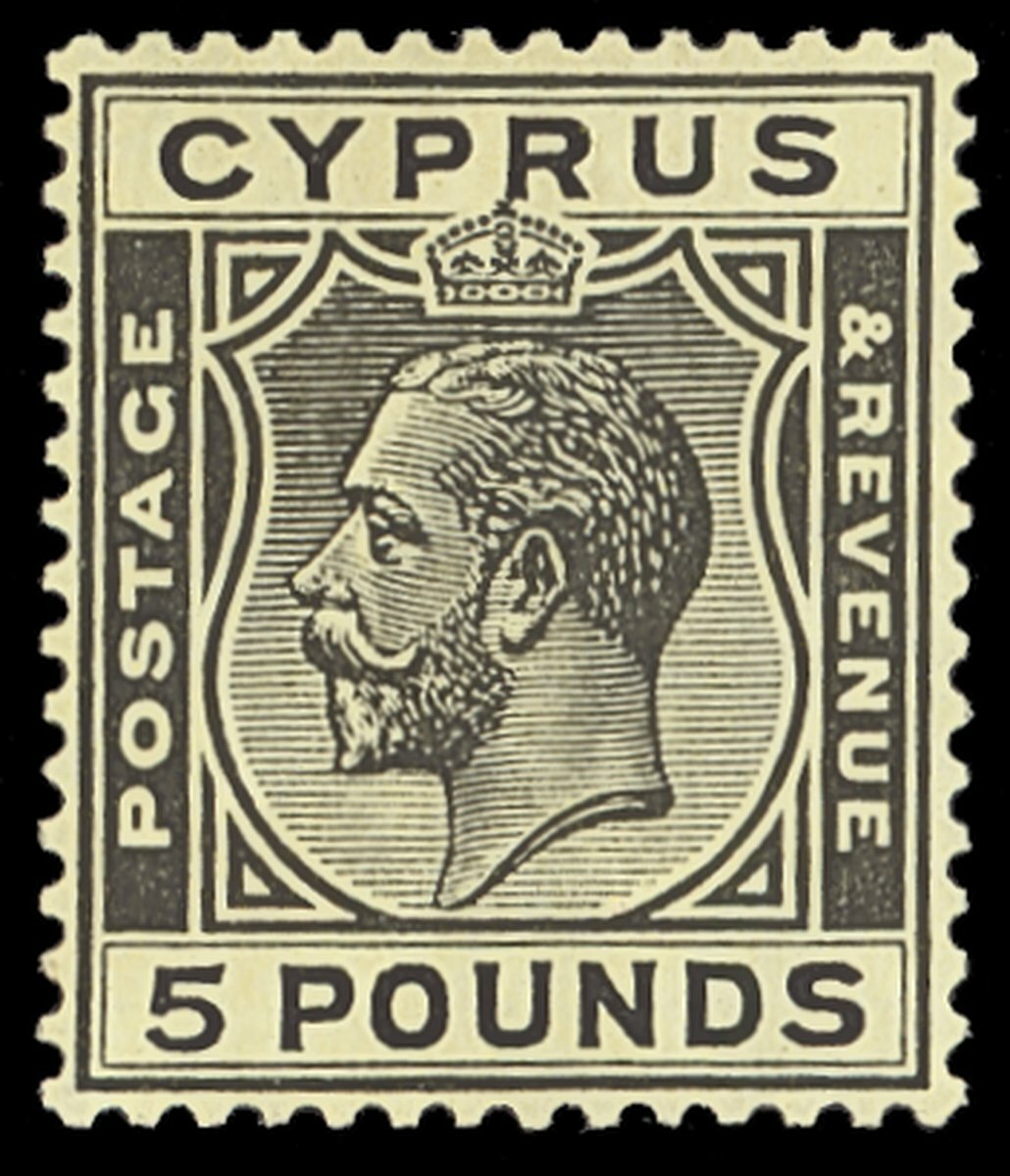 1928 £5 black on yellow, original gum; fresh and fine. Rare. R.P.S. Certificate (2018). S.G. 117a, £3,750. Photo