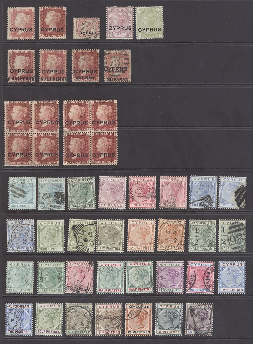 1880-1928 mint and used selection (90) on stockpage, including 1880 1d. Plates 216 and 218 blocks of four, 4d., 1881 30pa. on 1d., 1882-86 6pi. and 12pi., 1894-96 45pi.,1902-04 45pi., 1912-15 45pi.,1924-28 90pi., etc., chiefly good to fine