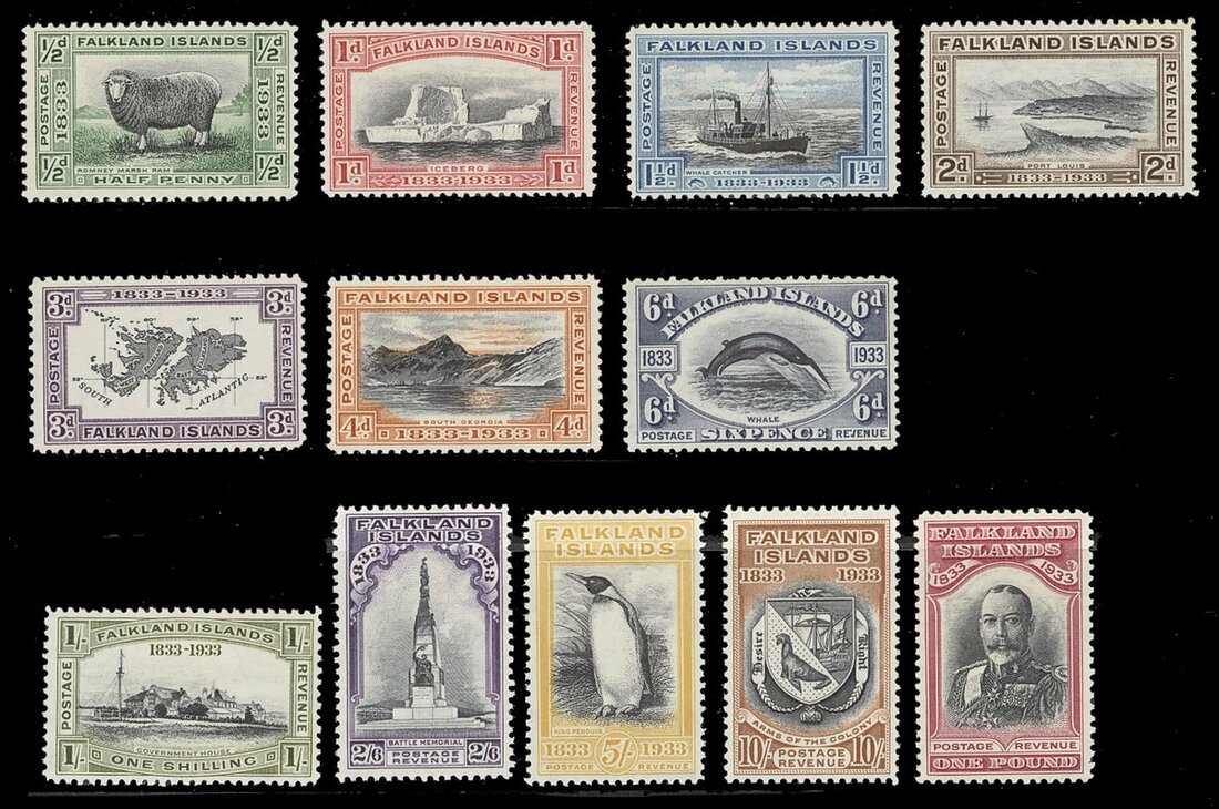 1933 Centenary ½d. to £1, large part original gum; 2/6d. with minor bend, otherwise a fine mounted mint set. PFSA Certificate for £1 (1985). S.G. 127-138, £4,250