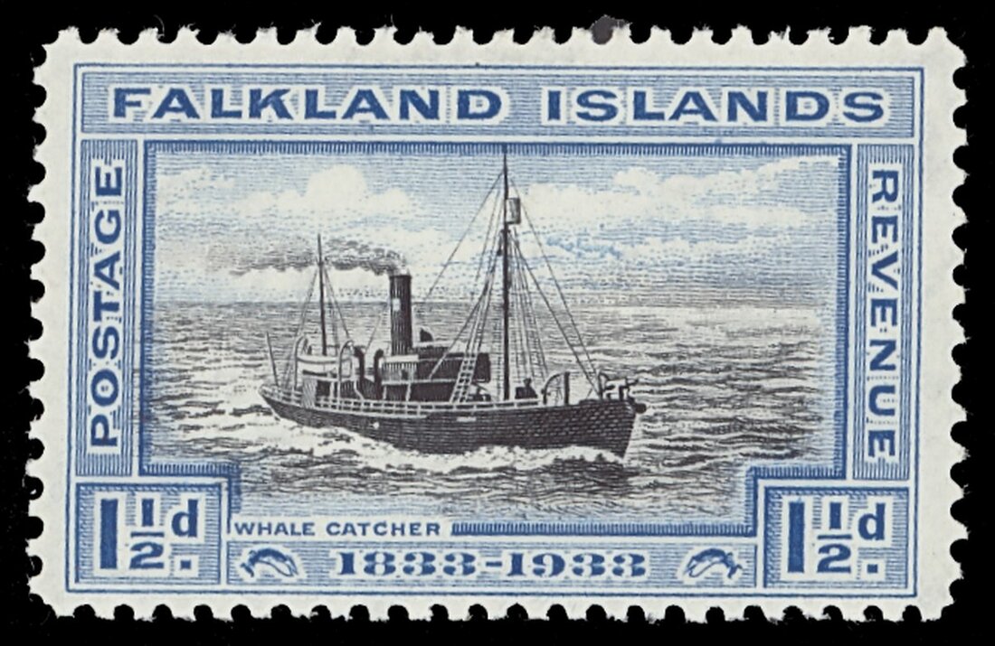 1933 Centenary 1½d. black and blue showing variety break in cloud; very lightly mounted on lightly toned gum with minor bends. Scarce. S.G. 129a, £1,500
