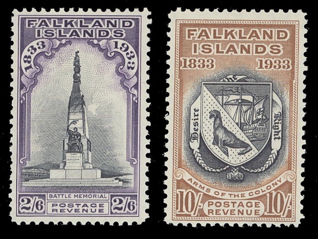 1933 Centenary 2/6d. black and violet and 10/- black and chestnut, unmounted mint. S.G. 135 and 137, £1,100