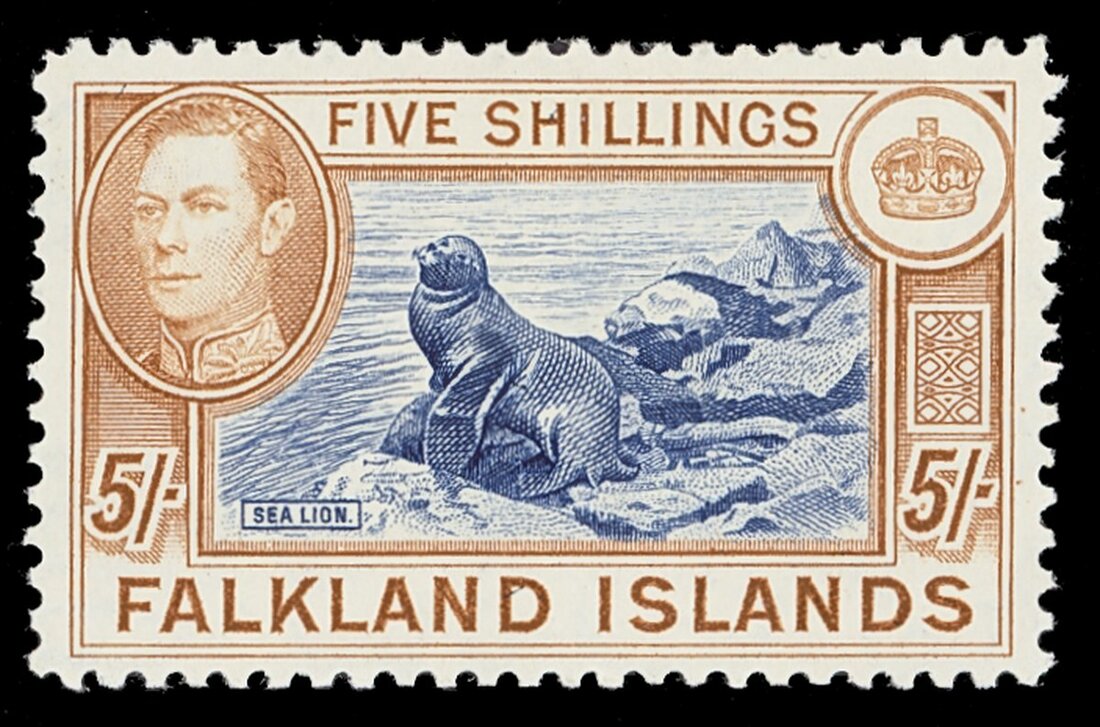 1938-50 5/- indigo and pale yellow-brown, lightly mounted mint. R.P.S. Certificate (1969).  S.G. 161b, £1,100