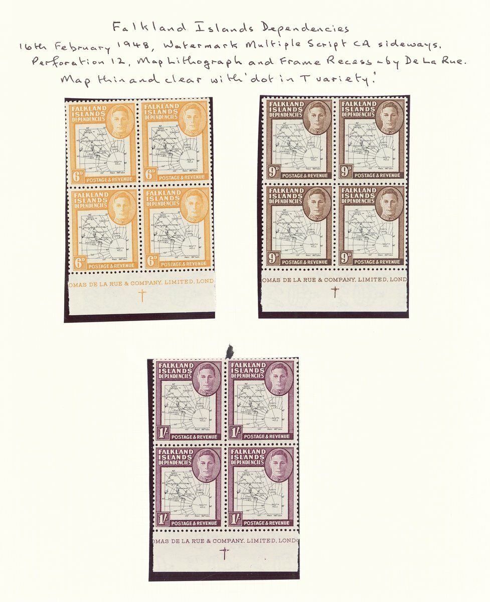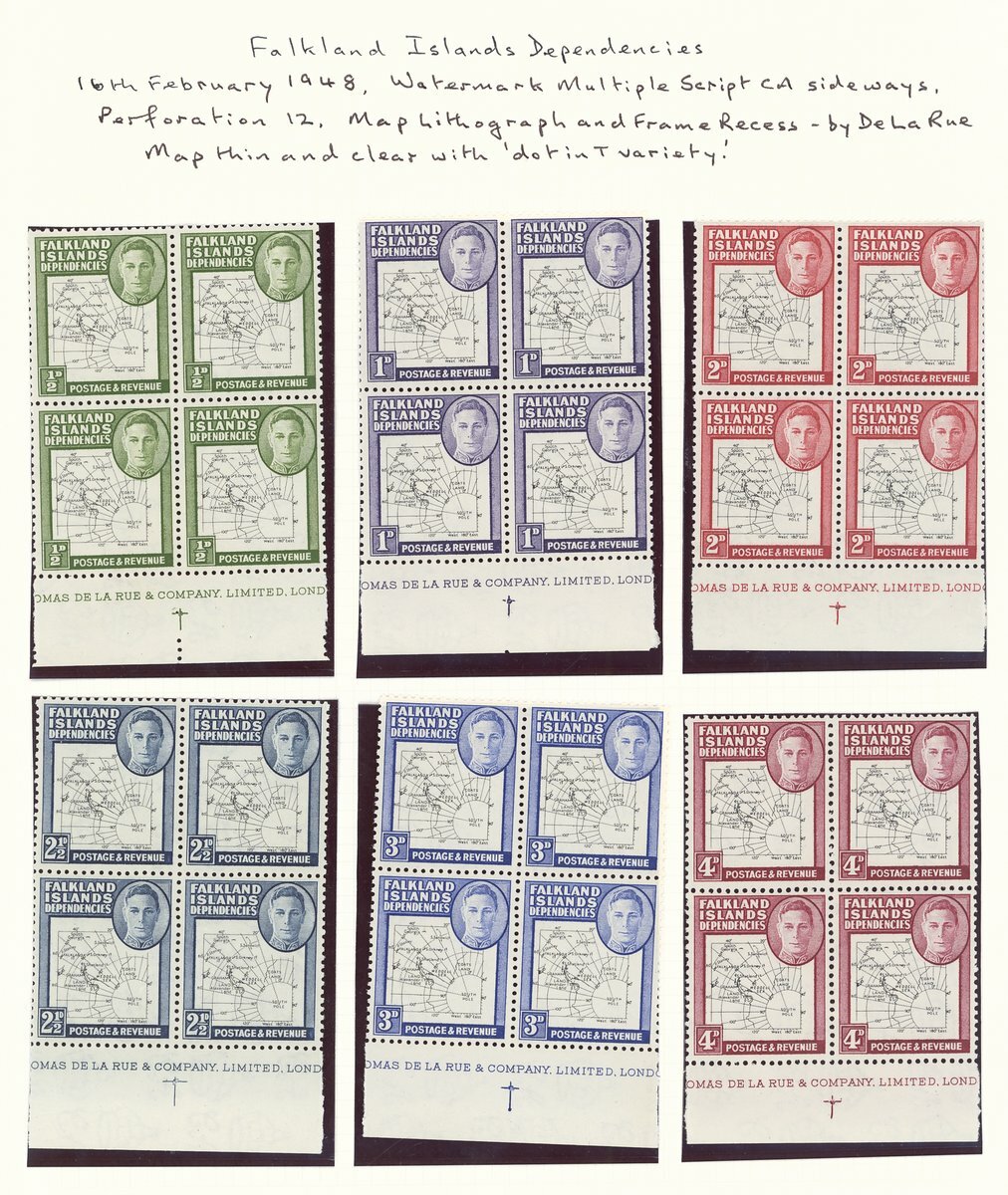 ½d. to 1/- set of nine, each in an imprint block of four, second stamp with variety dot in
