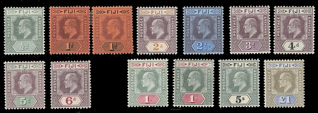 1903 ½d. to £1 with additional 1d. and 1/- (one repaired) shades; large part original gum, £1 with bend. S.G. 104-114, £450+