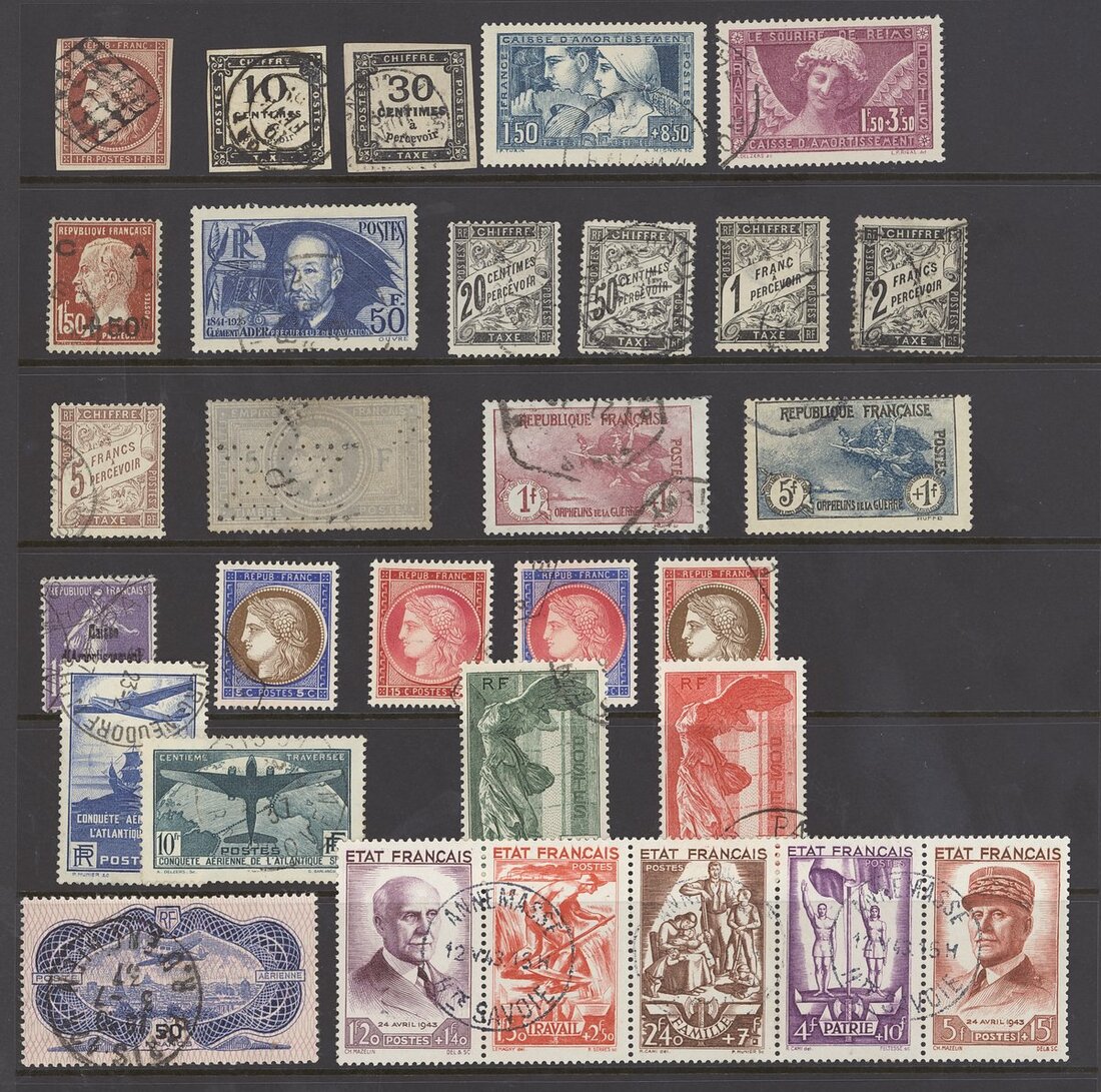 1849-1953 used selection on stockpage, including 1849-52 1f., 1869 5f., 1881-92 Postage Due 20c., 50c., 1f. black, 2f. black, 5f. reddish brown, 1917-19 Orphans 1f. + 1f., 1926-27 Orphans 5f. + 1f., 1928 Sinking Fund 1f. 50 + 8f. 50, 1930 Sinking Fund 1f. 50 + 3f. 50, 1936 Air 50f. on rose, 1936 South America flight set, 1937 Museums, etc., chiefly good to fine