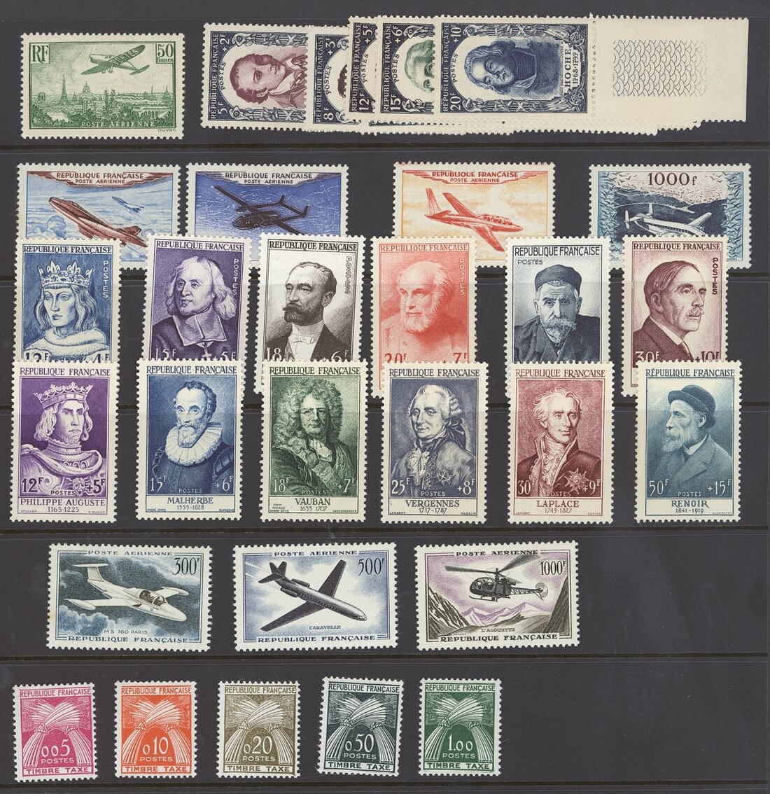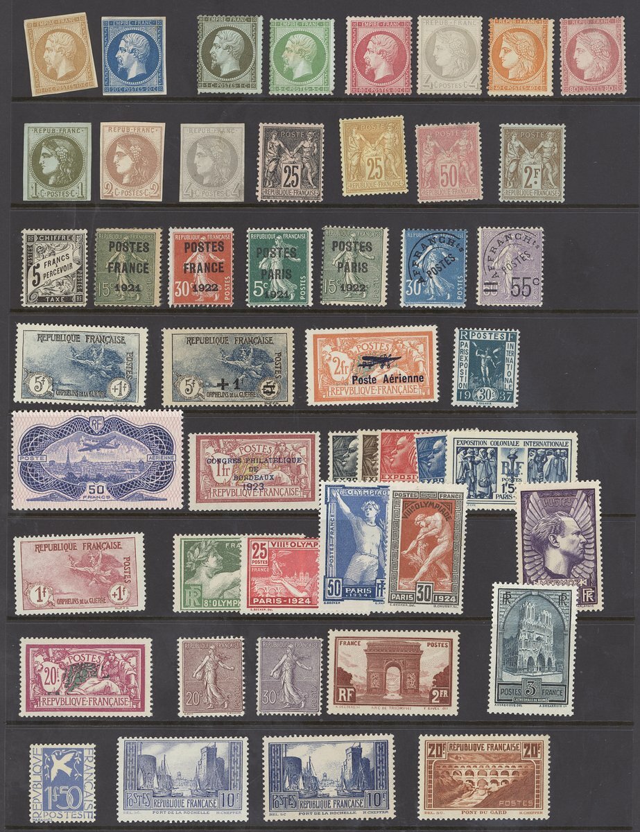 1853-1960 unused selection (78) on stockpages, including 1853-61 1c., 20c., 1862 80c., 1870-71 imperf. Bordeaux 1c., 2c. and 4c., 1871-76 80c., 1898-1900 2f., 1903 Sower 20c., 30c., 1917-19 Orphans 1f. + 1f., 1922 Orphans +1f. on 5f. + 5f., 1923 Bordeaux 1f., 1926 Orphans 5f. + 1f., 1927 Marseilles Air 2f., 1929-33 10f. (2), 20f., 1954 Air set, 1954 and 1955 National Relief, 1960 Postage Due set, etc., original gum with some unmounted mint; mixed condition