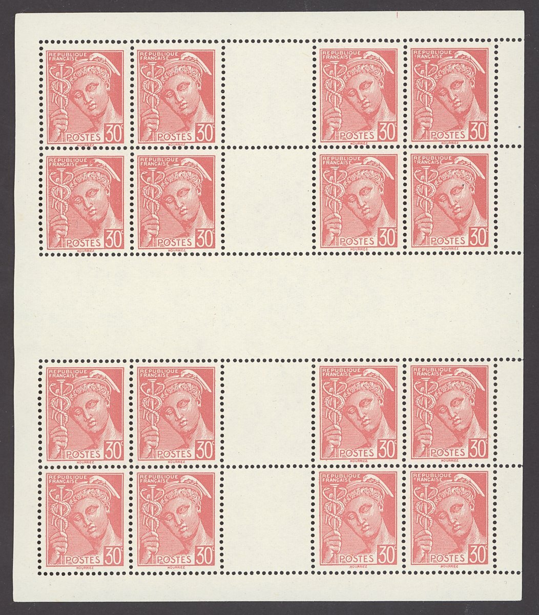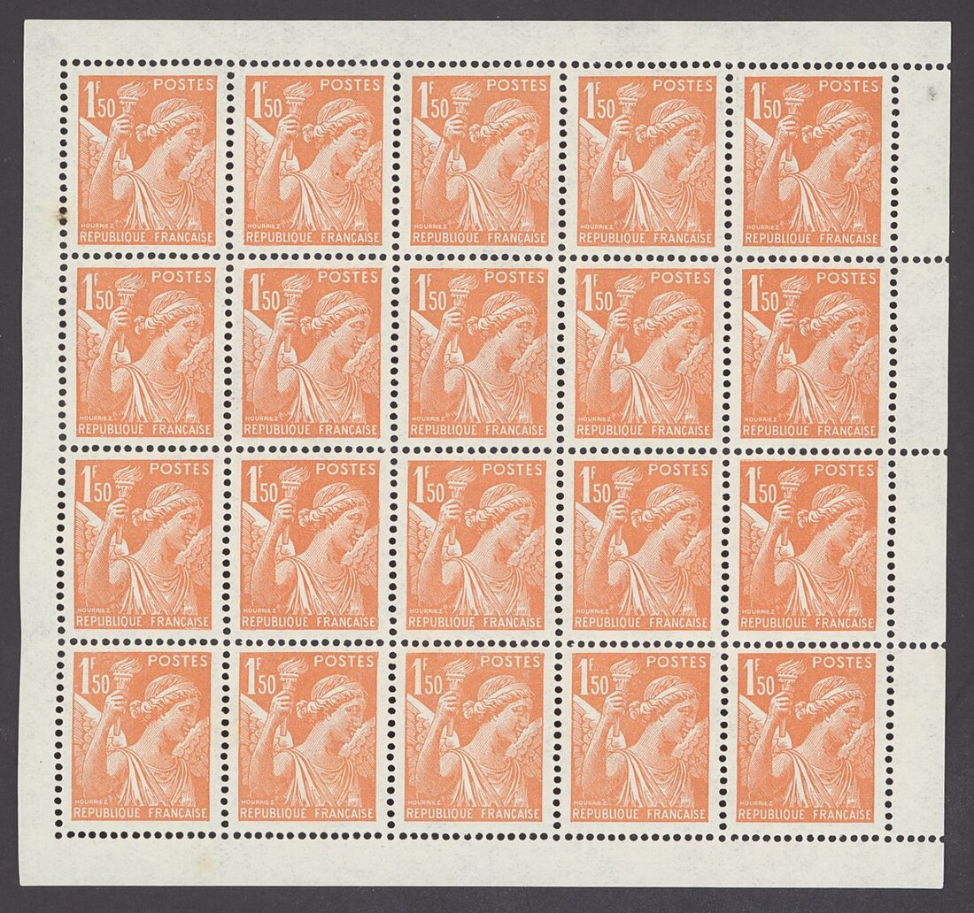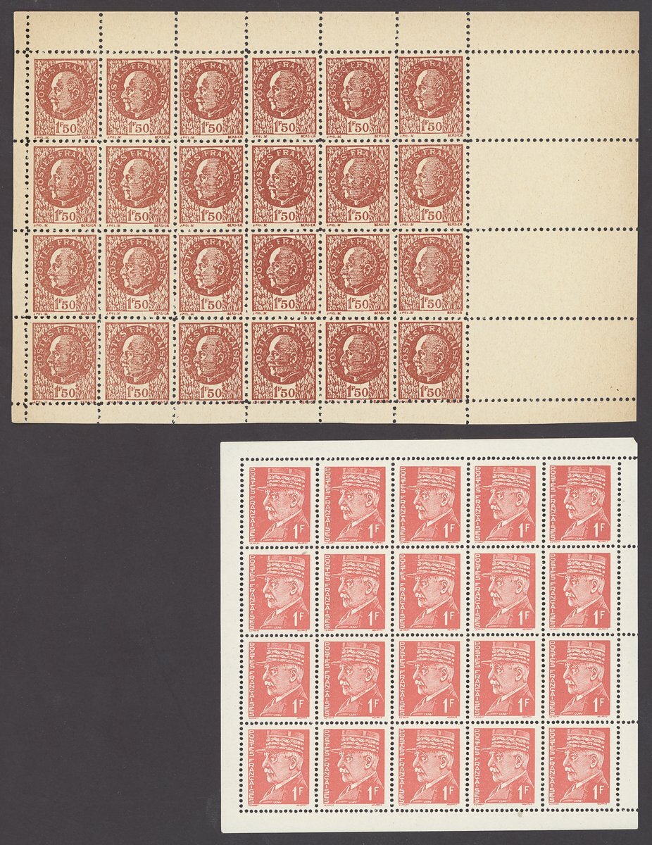 Selection on stock page, over 100 including Mercury 30c. sheet of 16c., Iris 1f. 50, Petain 50c. and 1f. sheets of 20, Resistance Petain 1f, 50 sheet of 24, etc., fine
