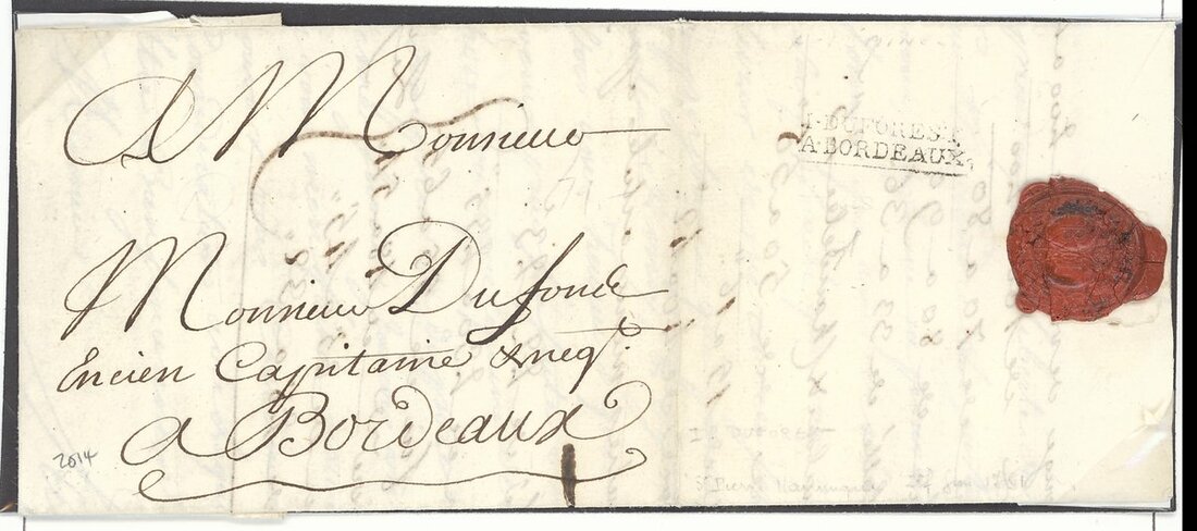 1751 (29 June) entire letter from St. Pierre to Bordeaux showing, on reverse, framed