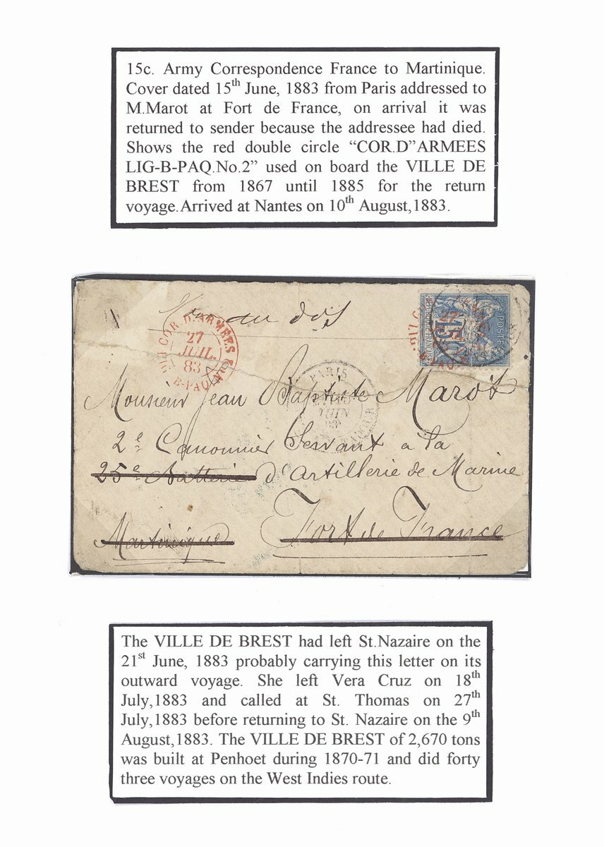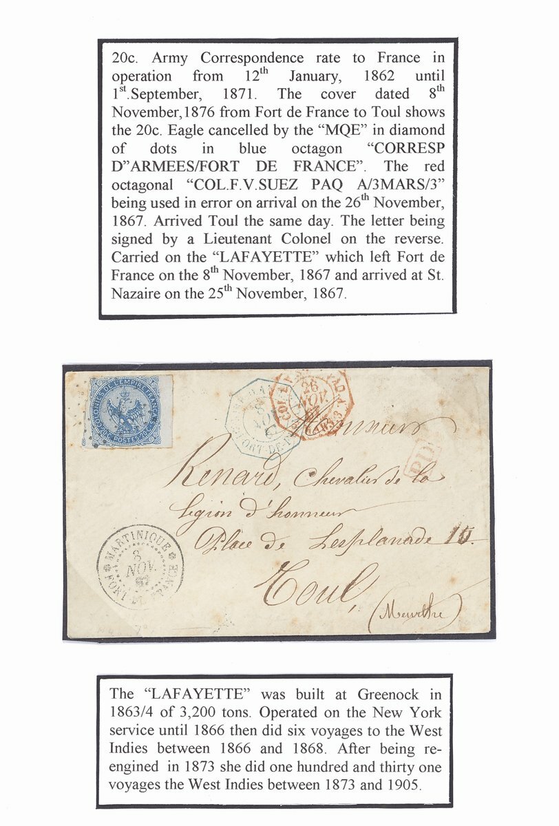 1867 (8 Nov.) envelope (traces of ageing) carried on the Lafayette from France de France to Toul, signed on reverse by a Lieutenant Colonel and struck on front in blue by octagonal