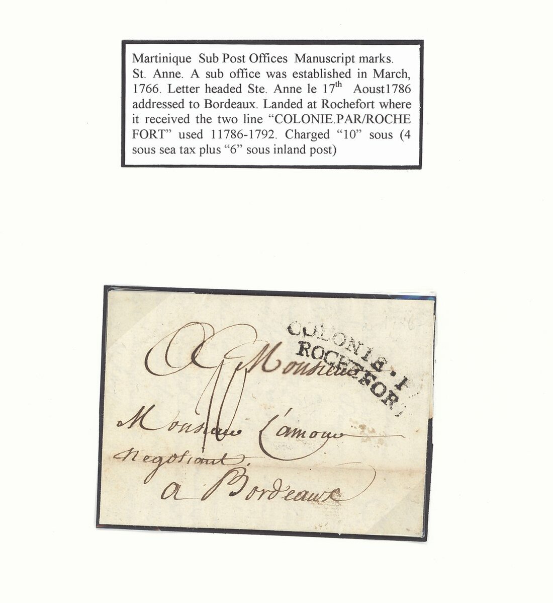 1786 (17 Aug.) entire letter to Bordeaux headed "Ste. Anne le 17 Aoust 1786" and showing fine curved