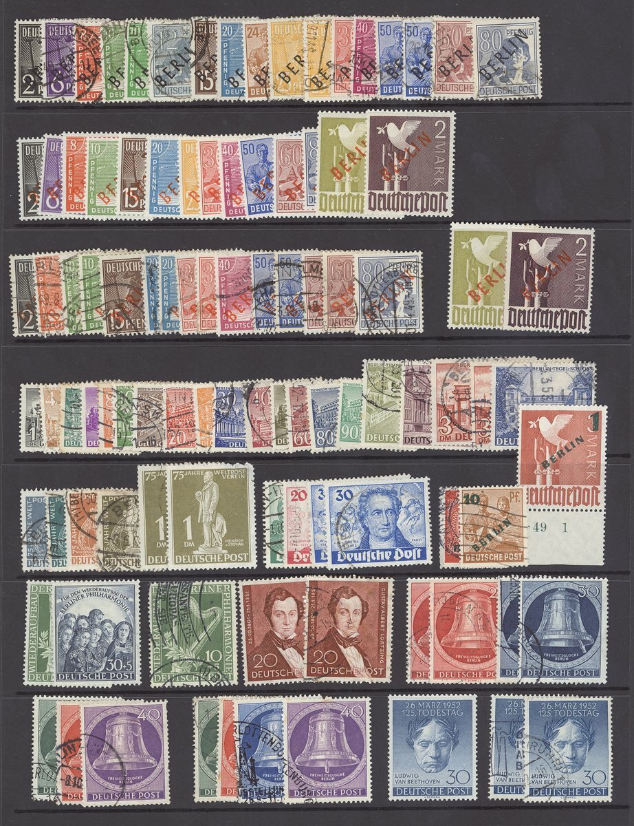 Mint and used selection on stockpages, including 1948 Black overprints with values to 80pf., red overprint set unmounted mint (signed Schlegel) and with additional values to 2m., 1949 Goethe, 1950 Orchestra, 1951 Lortzing (2), 1952 Beethoven (2), 1952-53 Berlinners (mint and used sets), etc., chiefly good to fine