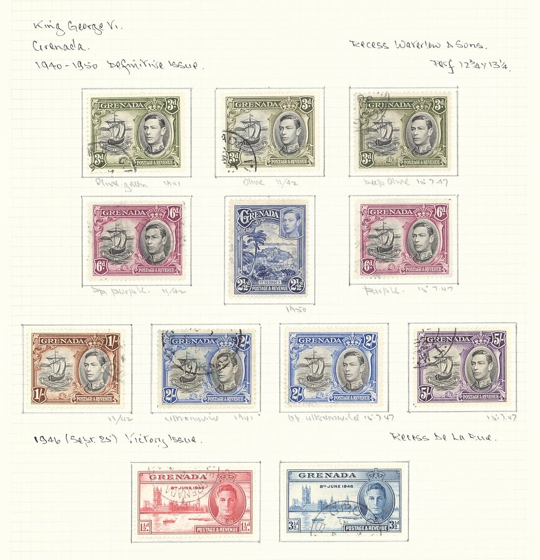 1937-52 used selection (88) on pages, including 1938-50 10/- (8 with perf. 14), 1948 Silver Wedding, 1951 to $2.50, Postage Dues, etc., chiefly fine