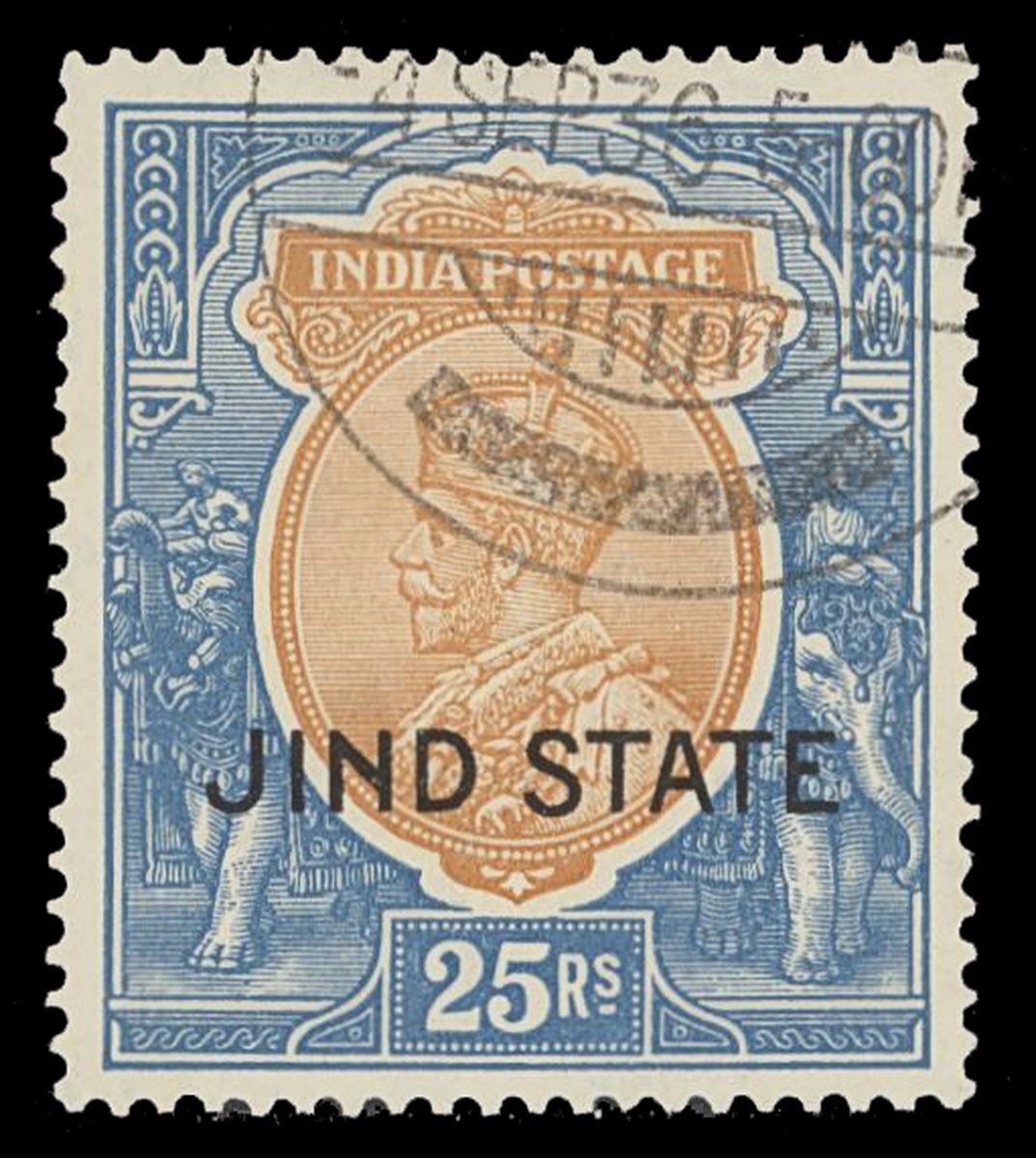 1927-37 25r. orange and blue, cancelled by favour. Fine and very well centred. R.P.S. Certificate (2010). S.G. 103, £2,250