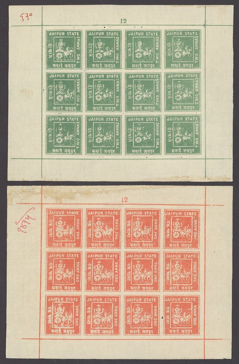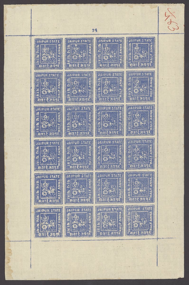 1904 ½a. pale blue (3 sheets of 24), 1a. dull red and 2a. emerald green sheets of 12; unmounted mint, some split perfs., fine. S.G. 3, 4, 5