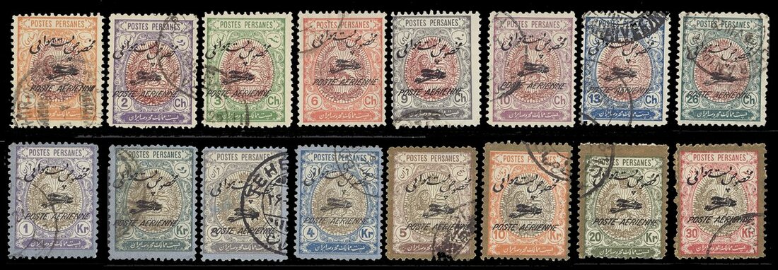 1927 Air 1ch. to 20kr., used, chiefly fine. A rare set. The 10kr., 20kr. and 30kr. signed Farahbakhsh. S.G. 642-657, £467. Photo