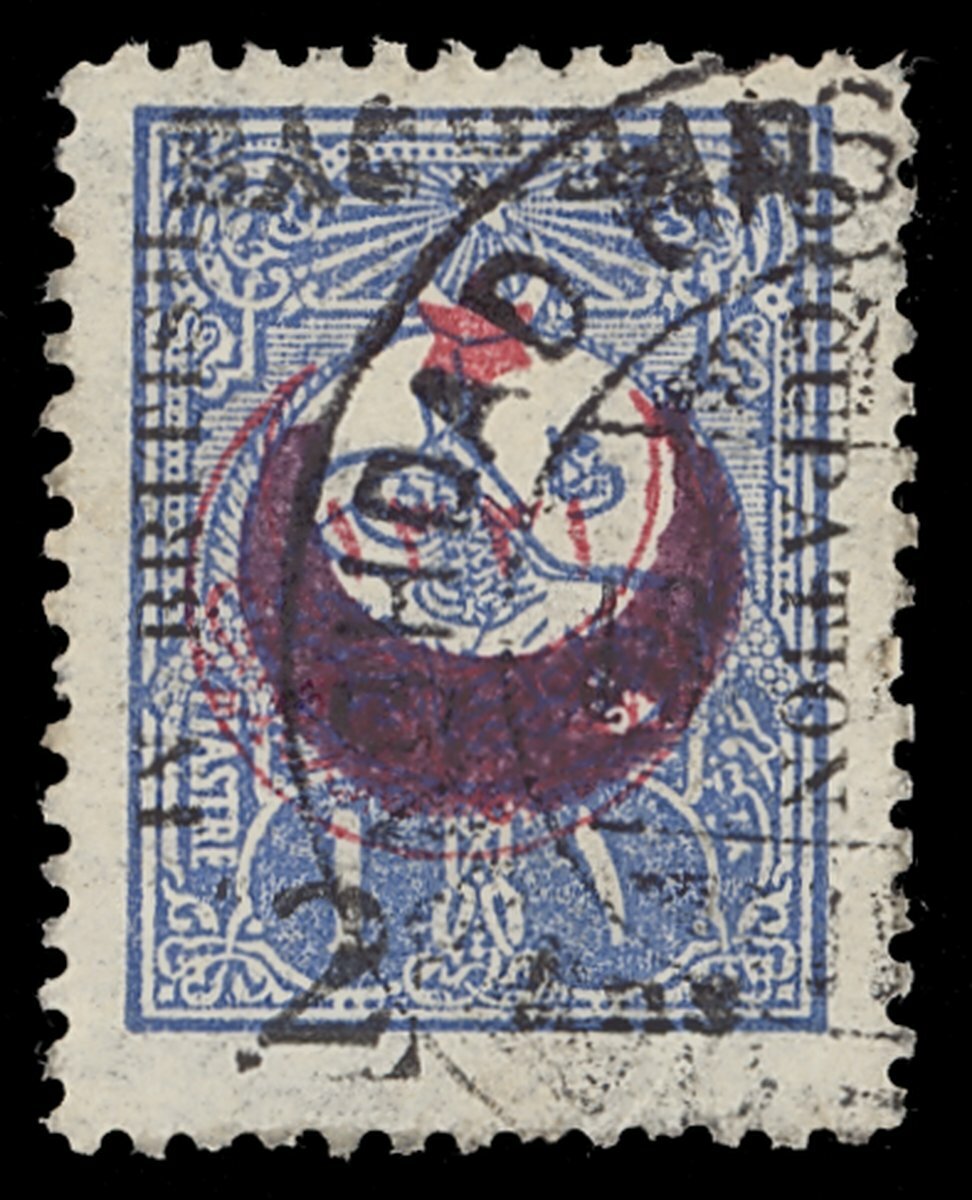 1917 (1 Sept.) Type 55, 2a. on 1pi. ultramarine on Type 28 of Turkey, used with a couple of creases, nevertheless a rare stamp. S.G. 25, £6,000
