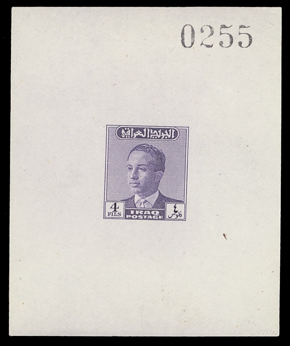 4f. slate-violet, die proof on gummed paper (58x70mm.), numbered "0255"; slightly wrinkled, fine
