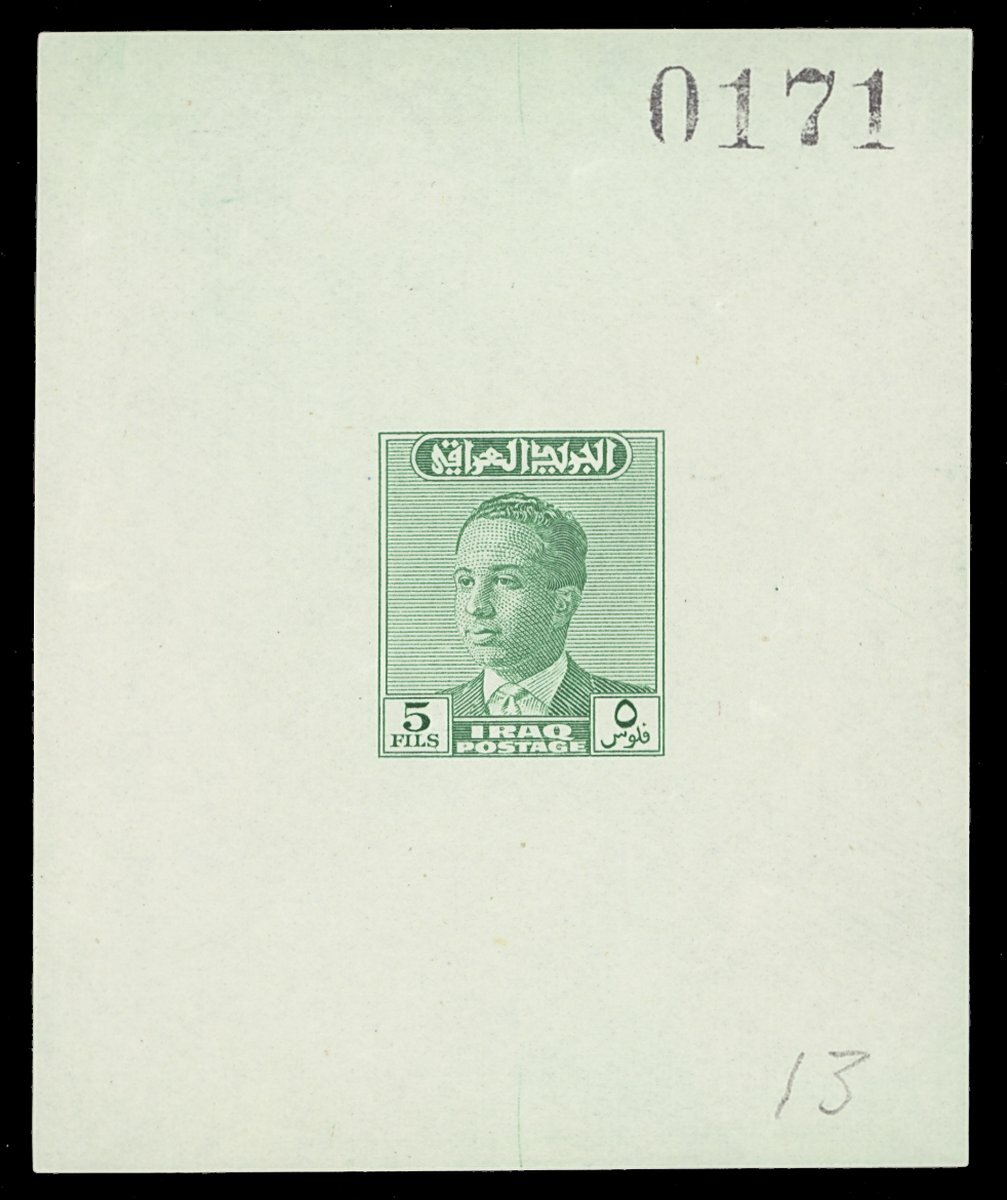 5f. emerald, die proof on gummed paper (58x70mm.), numbered "0171"; fine