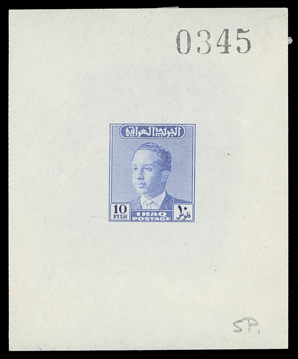 10f. blue, die proof on gummed paper (58x70mm.), numbered "0345"; fine