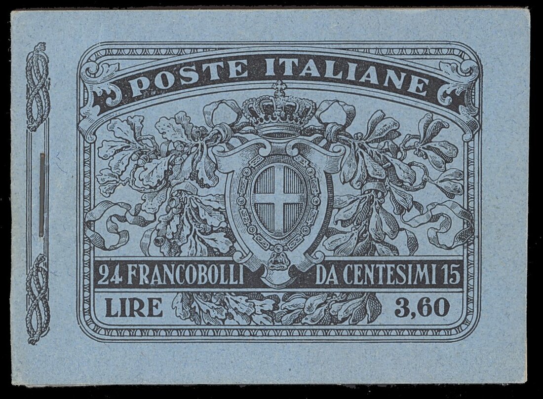 1911 Victor Emmanuel III 3L. 60 booklet with blue cover and containing four panes of six of the re-drawn 15c. slate; a few minor perf. faults, otherwise fresh and very fine. S.G. SB2, £7,000