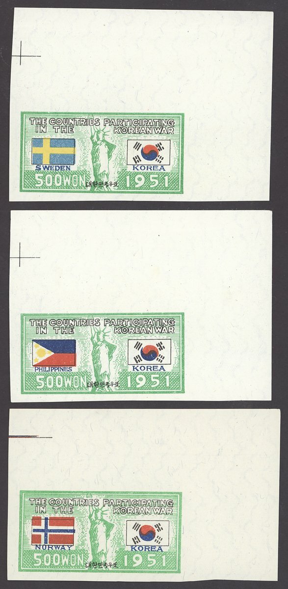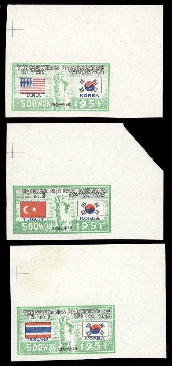1951-52 Participation on the Korean War set of forty-four imperforate proofs, ungummed; fine and rare. S.G. 158-179A, B