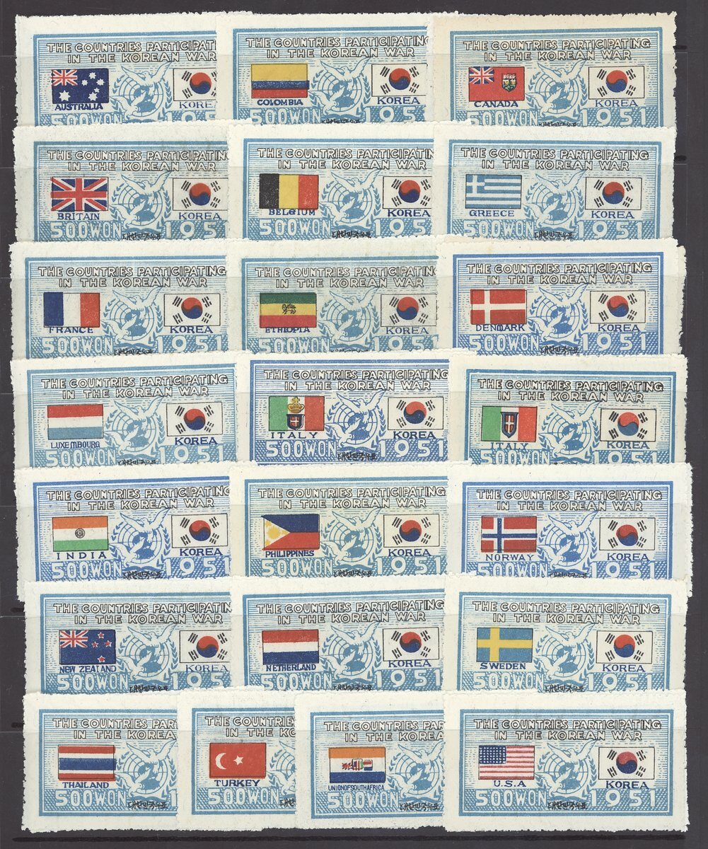 1951-52 Participation on the Korean War set of forty-four values, unmounted mint; fine. S.G. 158-179 A, B