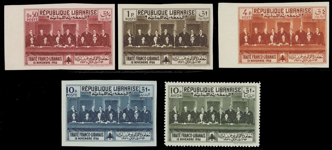 1936 Prepared for use but not issued Franco-Lebanese Congress Postage 0.50p., 1p., 4p. and 10p. imperf., Air 10p. perf., unmounted mint or very lightly hinged, fine and scarce