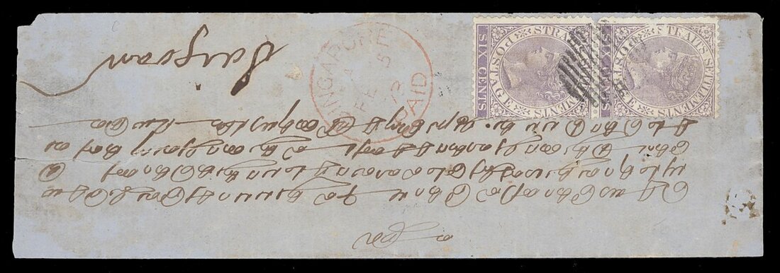 1875 (5 Feb.) entire to Saigon, bearing 1867-72 6c. lilac vertical pair placed sideways and cancelled by small circle of bars with red