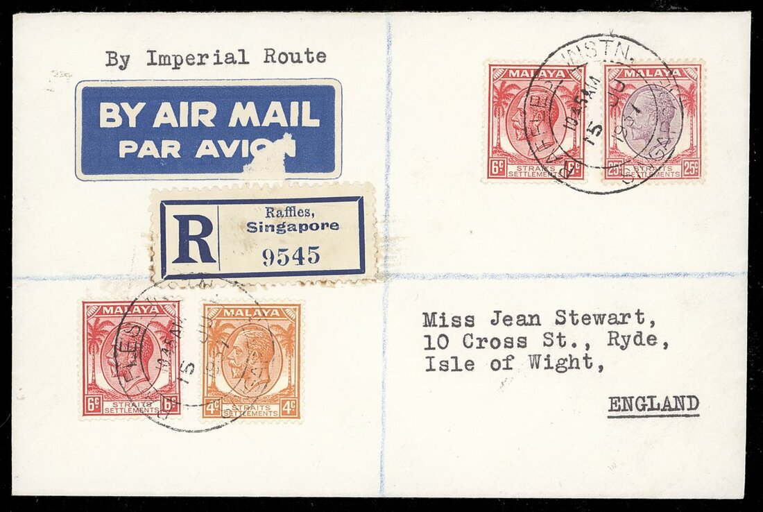 1937 (15 June) envelope registered to England, bearing 4c., 6c. (2) and 25c., all tied by