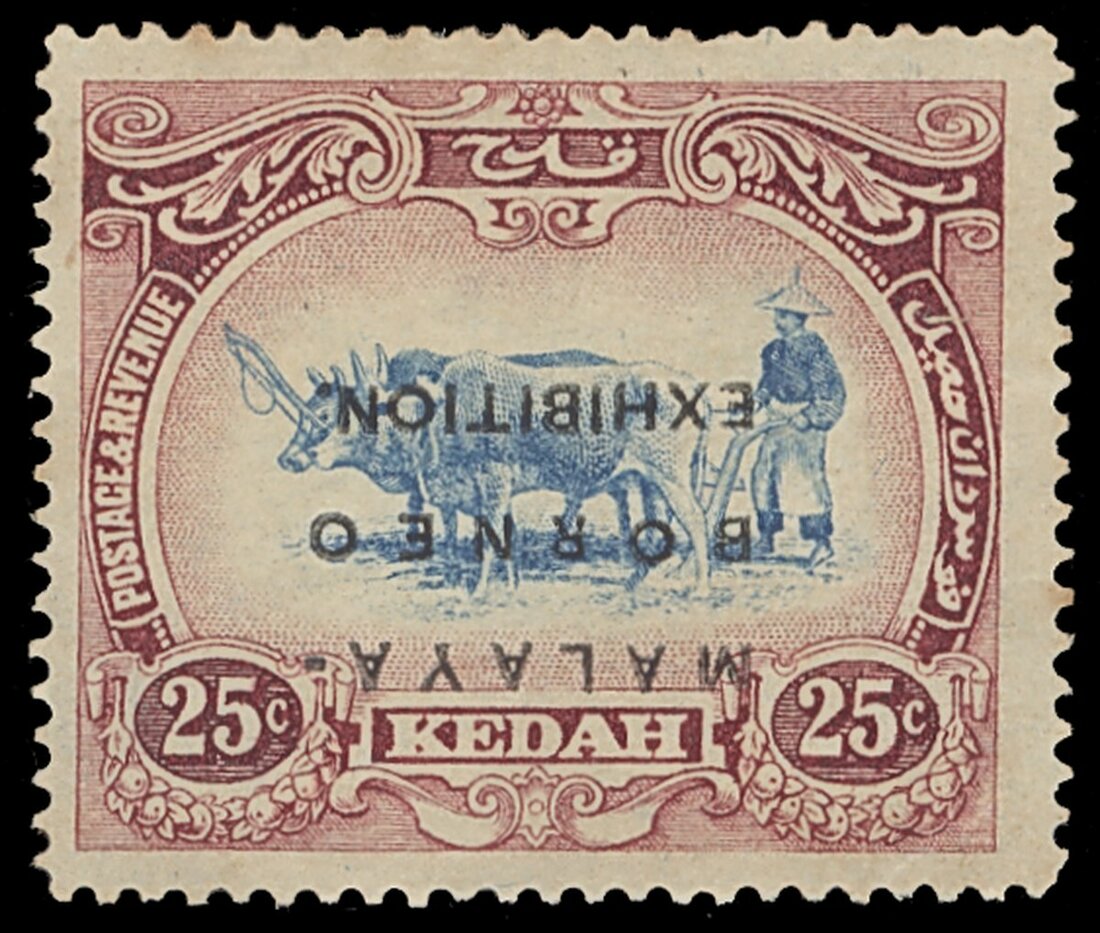 1922 Exhibition 25c. blue and purple showing variety overprint inverted, unused with large part original gum (slightly toned), fine. B.P.A. Certificate (1948). S.G. 43a, £1600