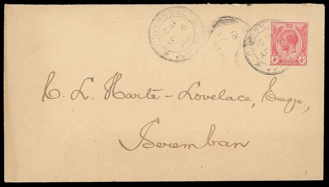 1921 (9 July) envelope to Seremban, bearing Straits Settlements 4c. tied by bi-lingual