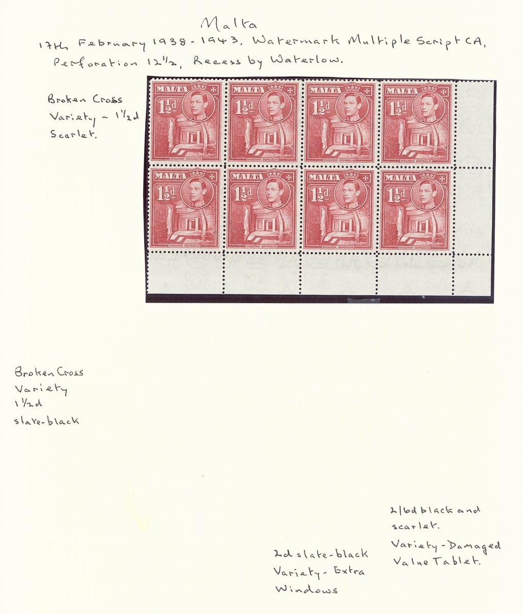 1938 1½d. scarlet block of eight from the lower right corner of the sheet, variety broken cross [R.5/7], unmounted mint. S.G. 220a, £400+